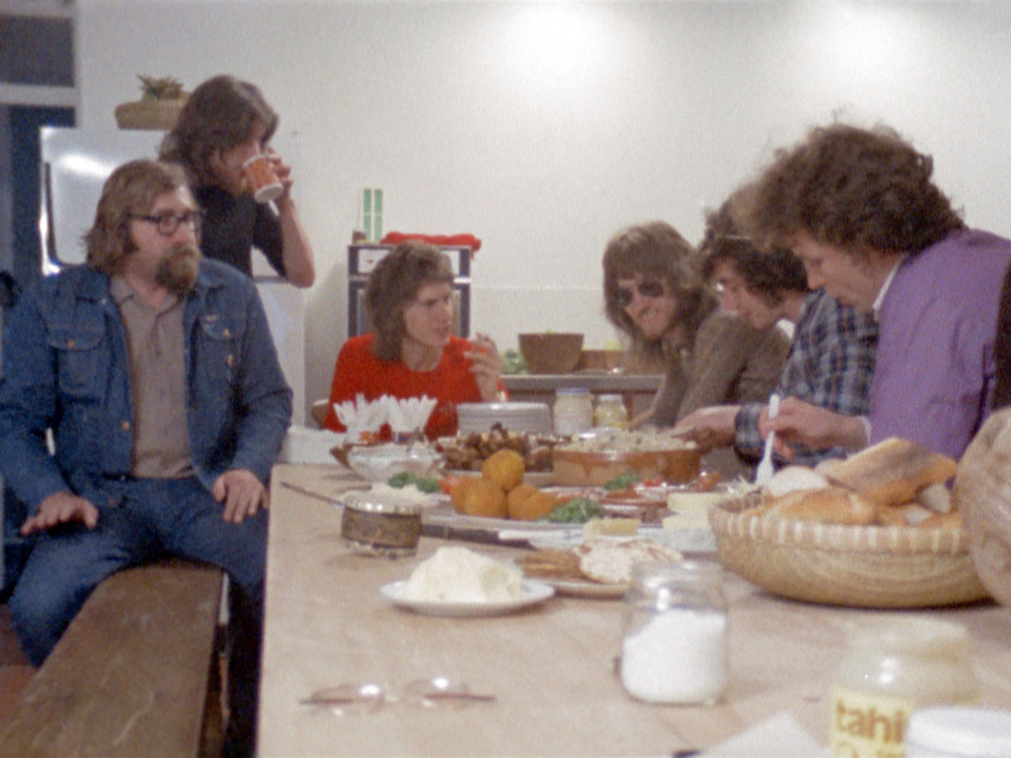 The same would be true of Ted Turner and John Tout on following days, who were soon at ease in such company and surroundings. In the large kitchen, a table rarely empty of tea, coffee, soft drinks, fruits, or food for all. The atmosphere was laid back, and almost like a mixed family gathering.. George reading a newspaper, ever respectful Klaus Voormann and Alan white catching up on recent events, and John, quietly holding court with easy humour.
